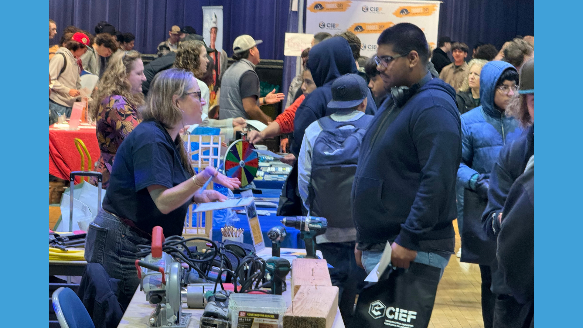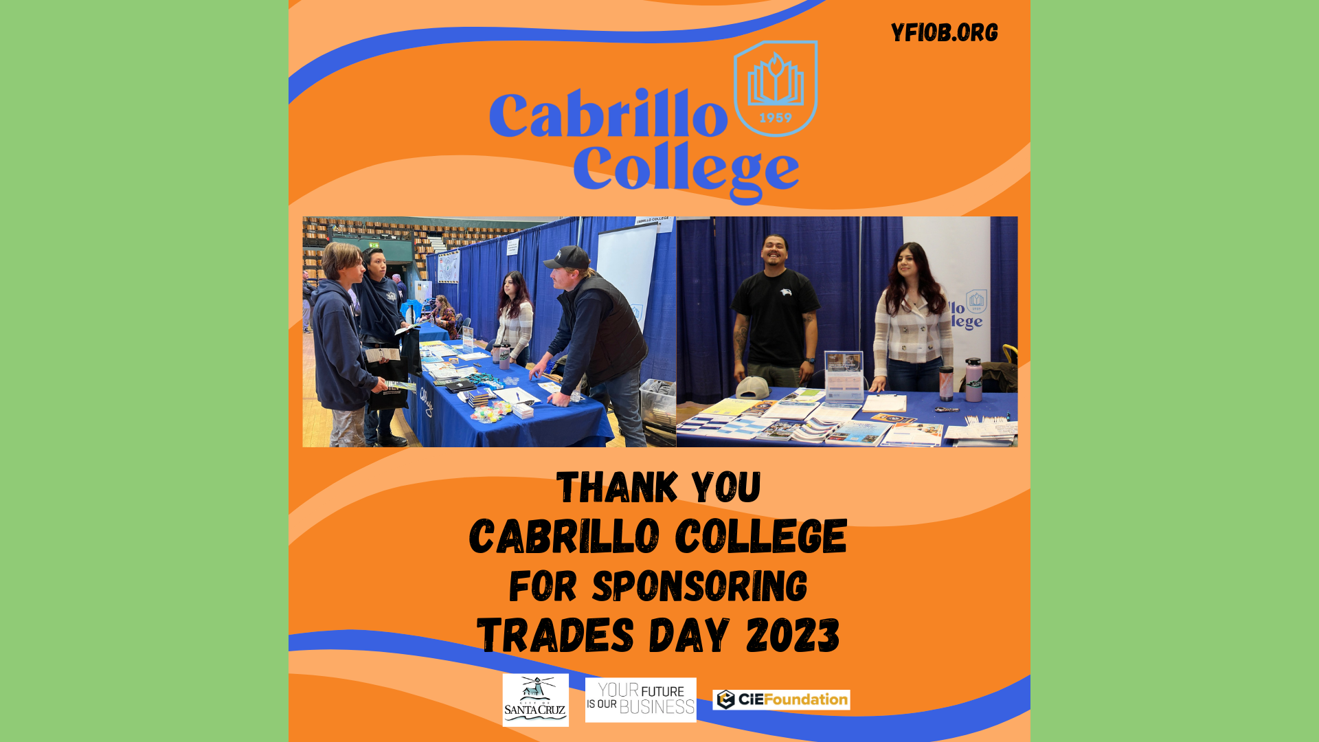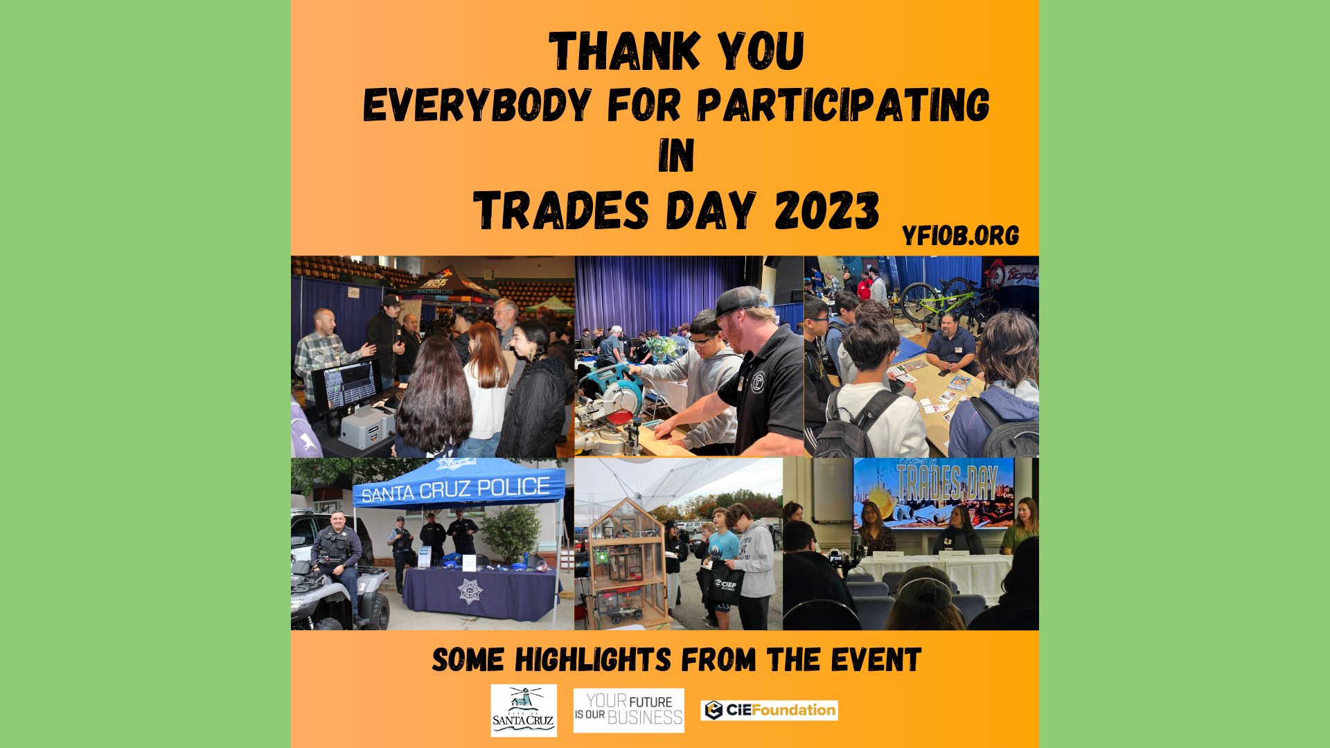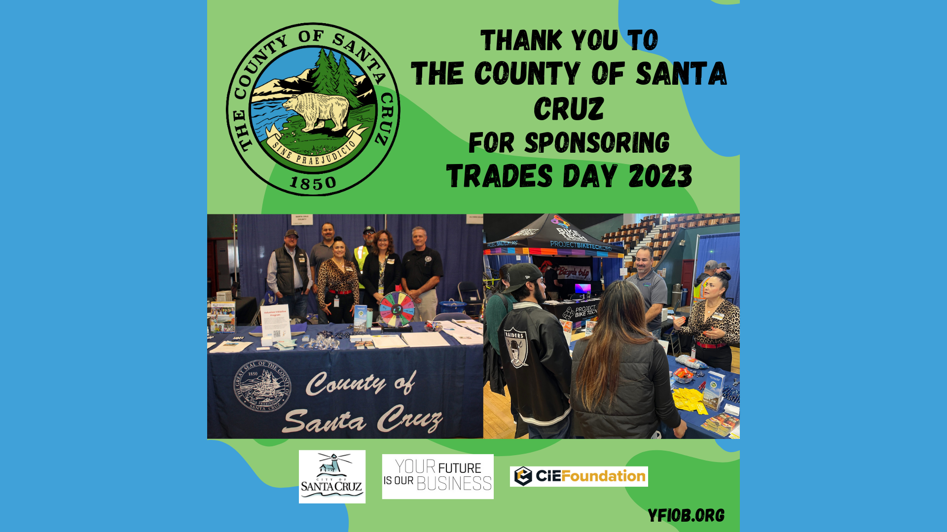 YFIOB – in partnership with the Construction Industry Education Foundation and The City of Santa Cruz – hosted the 3rd Annual Trades Day at the Santa Cruz Civic Auditorium. Trades Day introduced 616 students from Santa Cruz County and beyond to career opportunities, hands-on experience, with 79 industry professionals, within the Construction and Building Trades industry. The all-day event was a successful showcase of exploring the local trades industry.