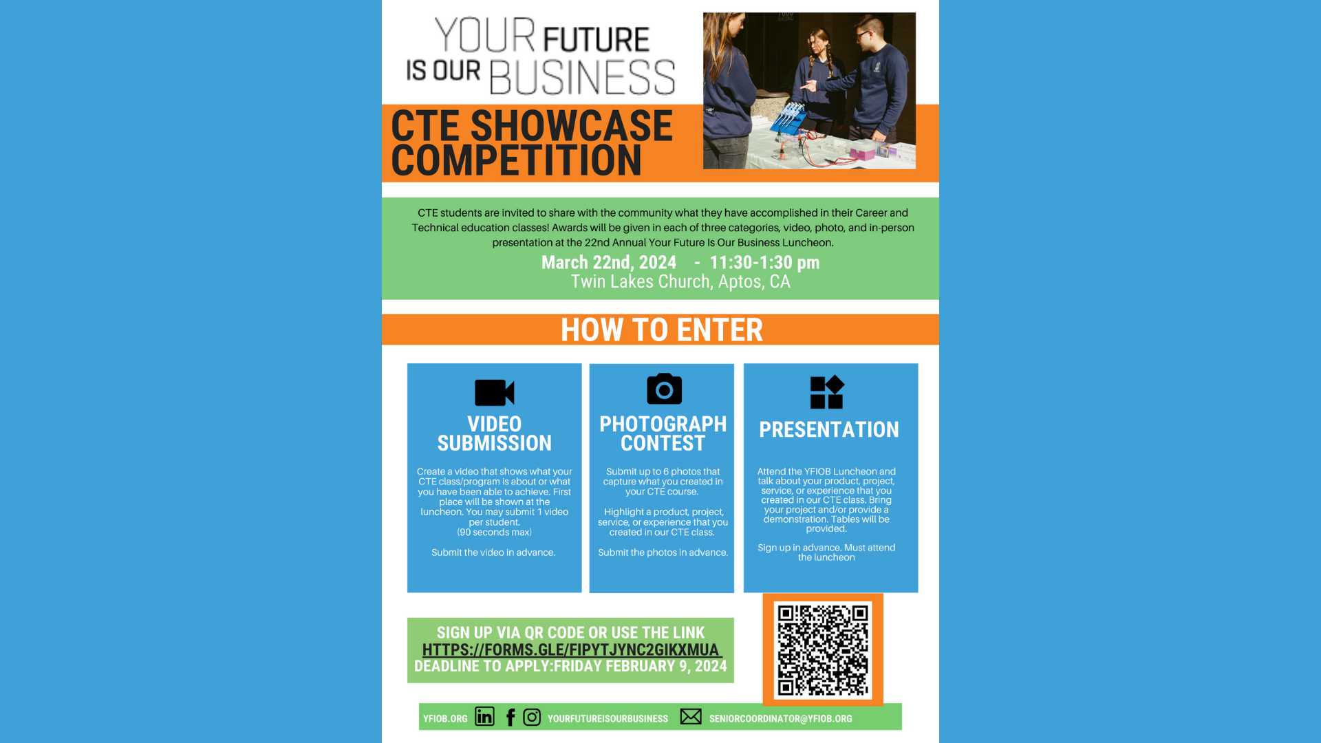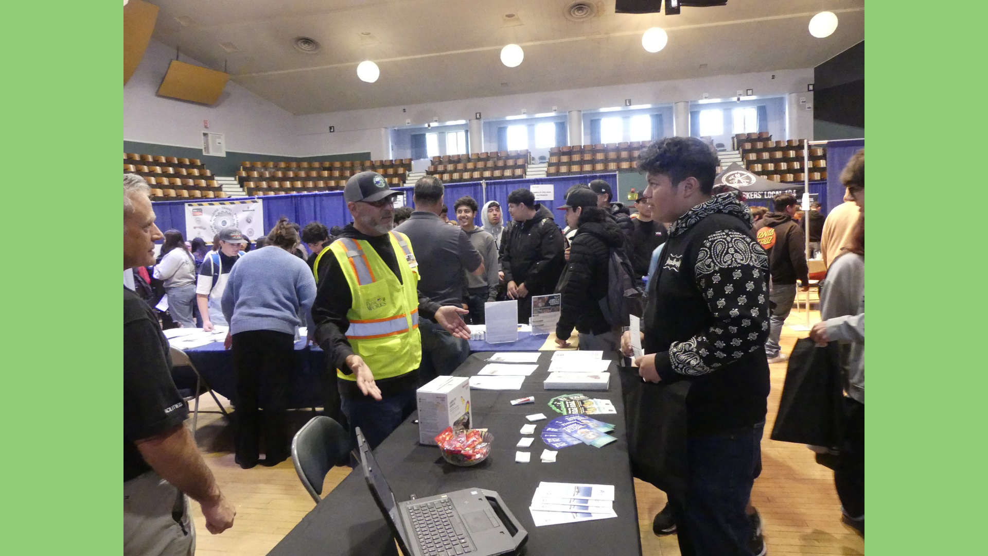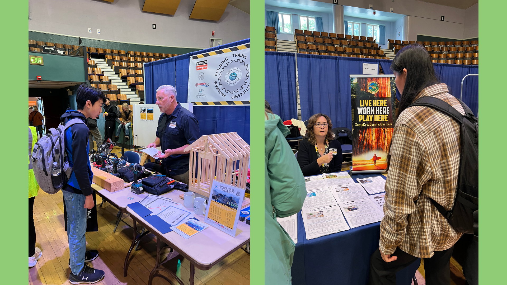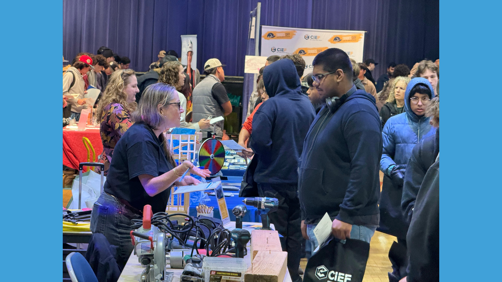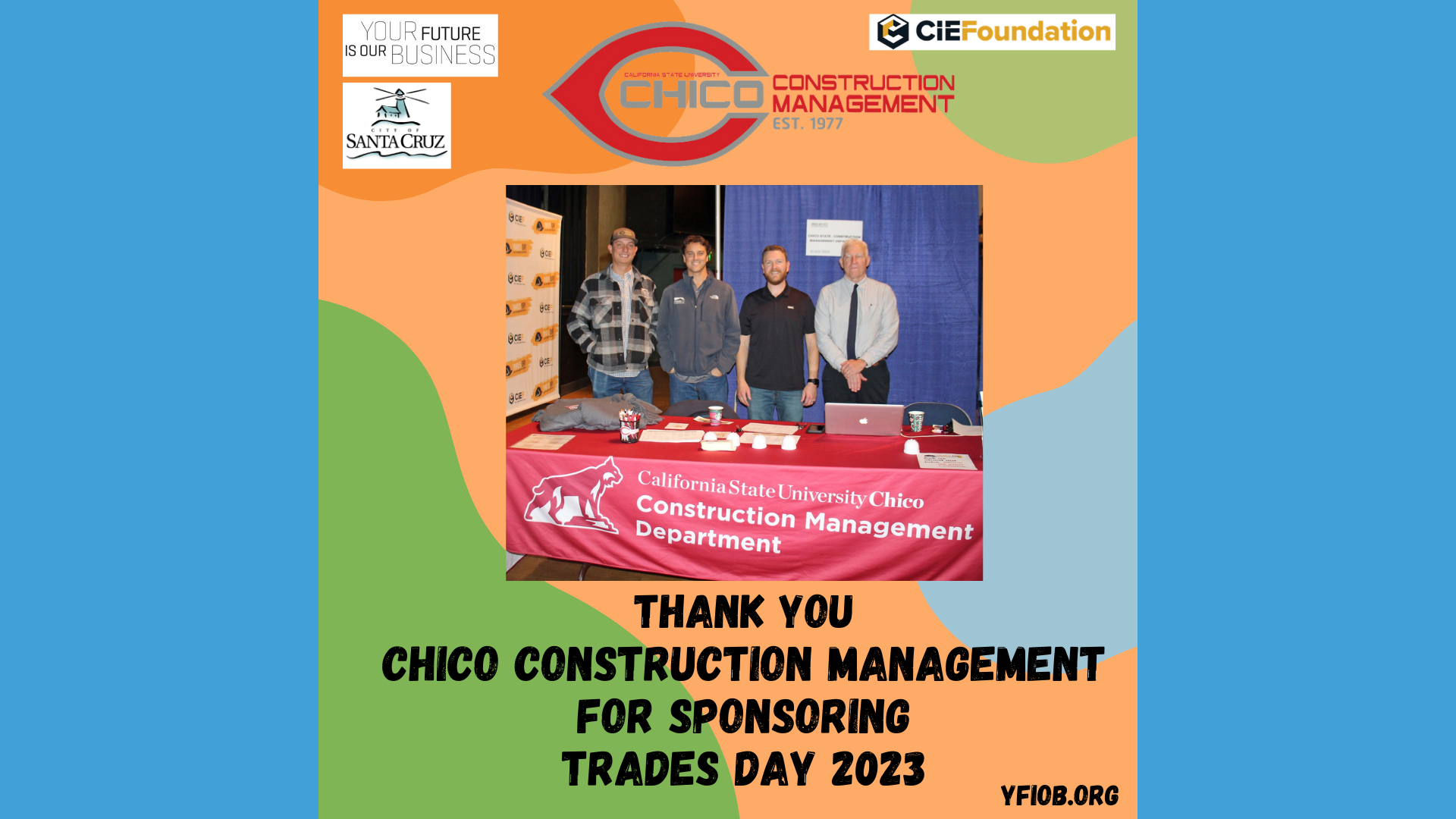 YFIOB – in partnership with the Construction Industry Education Foundation and The City of Santa Cruz – hosted the 3rd Annual Trades Day at the Santa Cruz Civic Auditorium. Trades Day introduced 616 students from Santa Cruz County and beyond to career opportunities, hands-on experience, with 79 industry professionals, within the Construction and Building Trades industry. The all-day event was a successful showcase of exploring the local trades industry.